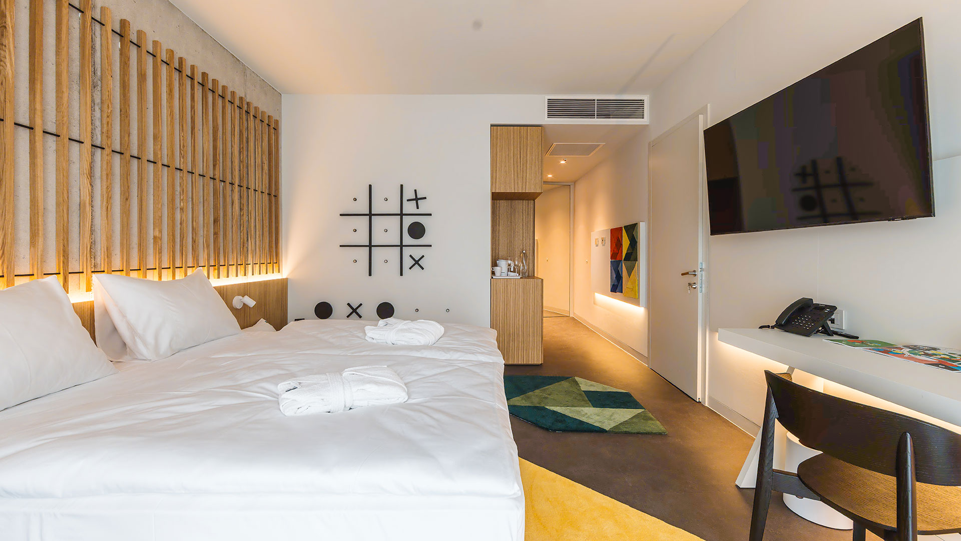Jedes Familienzimmer birgt etwas Besonderes – ein interaktives Wandpanel, das die Kinder nutzen können, um Formen zusammenzusetzen und ihrer Fantasie freien Lauf zu lassen. Tangram, eines der ältesten Puzzles der Welt, ist jetzt in einem völlig neuen Gewand erhältlich und bereit für kleine Genies, die Herausforderungen und Spiele lieben. Dieser sympathische Held bringt durch ein interaktives Buch Ideen und Herausforderungen für das Formenpuzzle und verwandelt den Aufenthalt im Hotel in ein wahres Abenteuer.