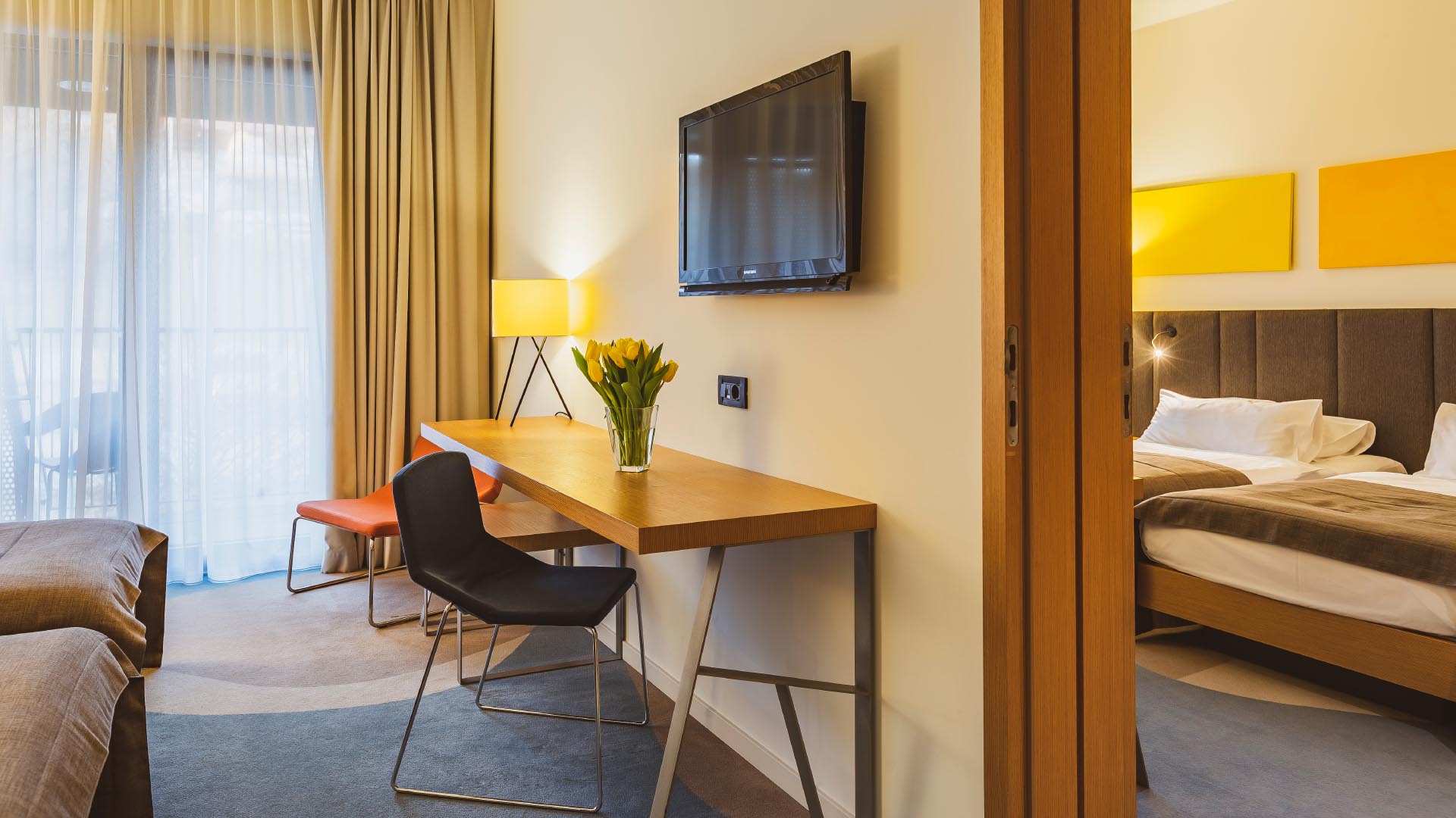 Povezane obiteljske sobe omogućit će vam veću udobnost tijekom boravka. Dvije sobe povezane vratima, svaka s vlastitom kupaonicom i balkonom osmišljene su da zadovolje potrebe svake obitelji. Ako vam zatreba, u sobi ćemo vam pripremiti i dječji krevetić, kadicu za kupanje, podlogu za previjanje te grijač bočica.